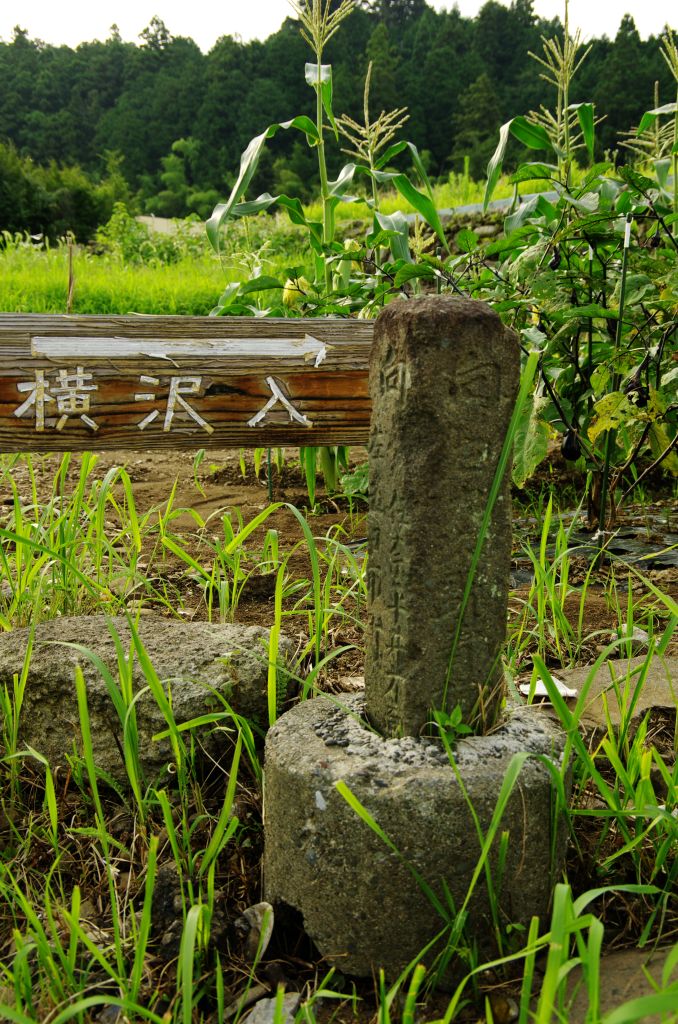 分かりづらい場所だが、良く見ると路の分岐には古い道しるべと