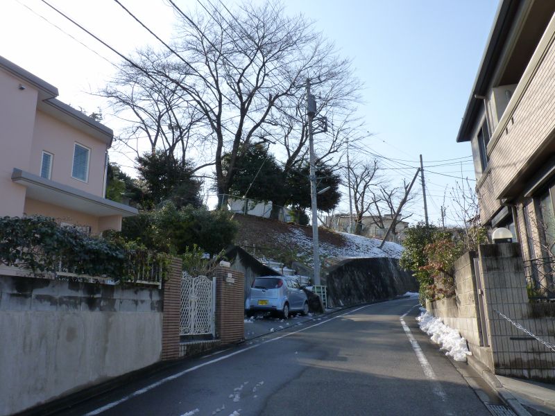 開発の際に山を完全には切らなかったため、この道沿いが谷地になってるのがよく分かる。