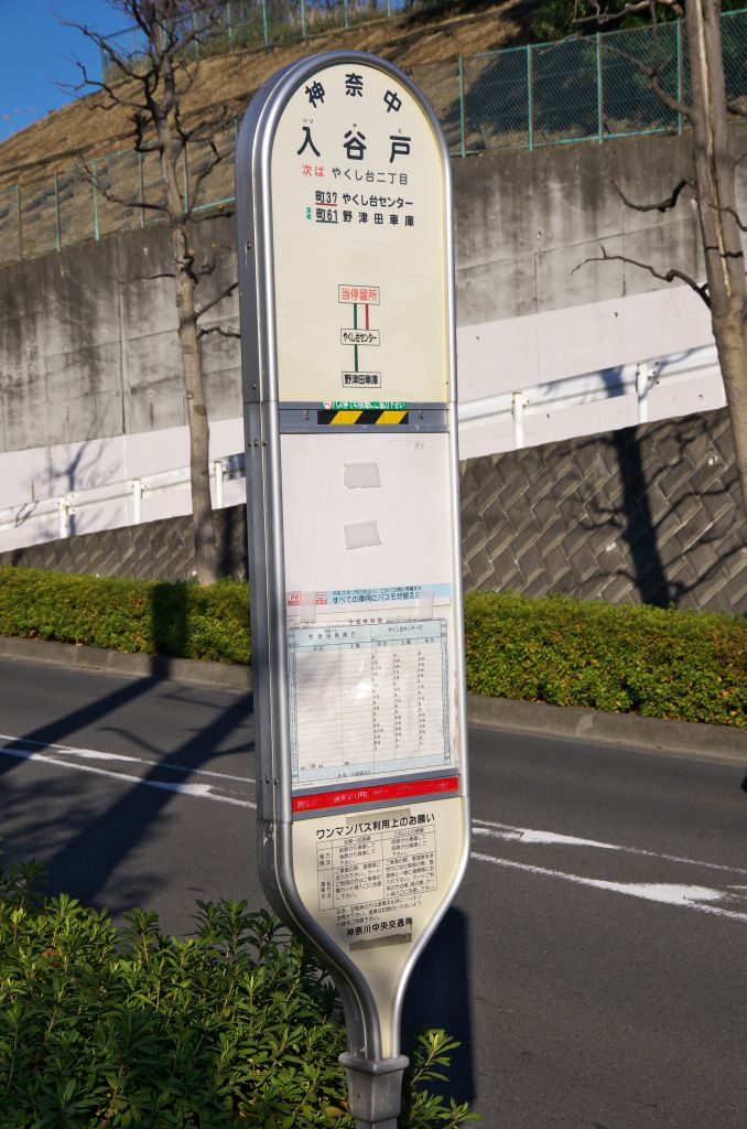 神奈川中央交通のバス停「入谷戸」が立っている。